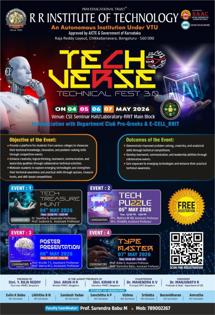 TECHVERSE –Technical Fest 3.0 Organized By Computer Science & Engineering Department, R R Institute of Technology, Chikkabanavara, Bengaluru!